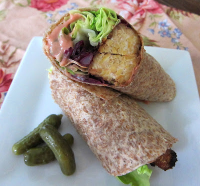 Tonight's dinner theme was blueberries...I had a nice package of them, and I decided that I needed to make a blueberry maple chipotle sauce for my tempeh. You may be thinking...blueberries in a barbeque sauce? Well, actually it is delicious! The sweet and sour berries with balsamic, maple syrup and spicy chipotle are a great combo! Especially with a bit of shallots and garlic added to the sauce to make it more savory! It is wonderful on the meaty tempeh! And what better to accompany it during the summer, than a corn salad laced with blueberries as well, with a few scallions and basil thrown in for good measure in a lemony light dressing! It is the perfect meal for anyone living in Minnesota or the midwest right now where you can buy all of the produce locally, which was why I chose these particular ingredients. This blueberry themed meal brought a smile to my face as I was enjoying it, and I am sure it will to yours as well if you decide to try it!